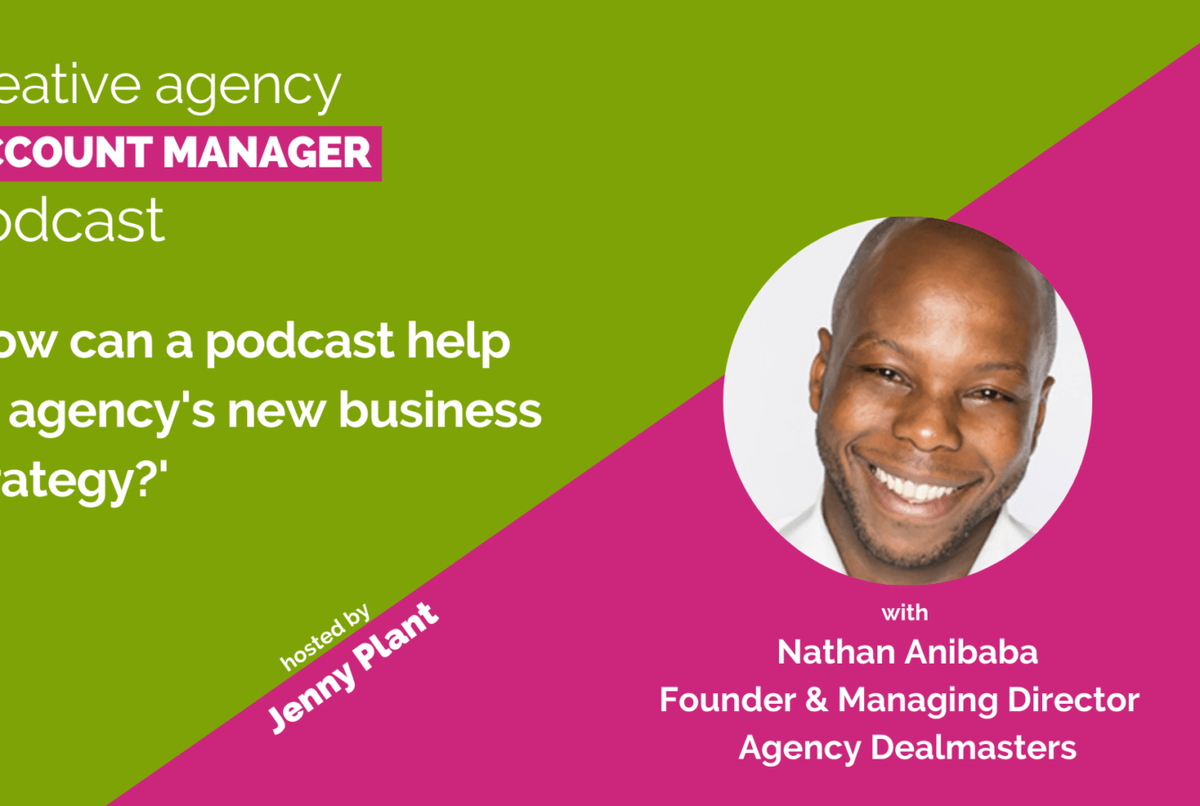 I really hope you find this valuable.If you haven't done so already, take the quiz here on the website, which is all about agency growth. You can also sign up for my weekly news newsletter where I share advice and tips for agency account managers and all of the episodes of the podcast.Transcript:Jenny 00:03So today I'm delighted to welcome Nathan Anibaba to the show. He is founder, managing director and host of the very popular Agency Dealmasters, which is probably one of the most popular B2B podcasts for both agencies and brands. And I was super impressed when I found the podcast, because he's had guests, including people like Blair Enns the author of 'Win Without Pitching' and 'Pricing Creativity', and also the New York Times best selling author Greg McKeown, and his book was 'Essentialism', and many, many more guests. So super impressive Nathan. I know you're usually more kind of comfortable this side of the mic, but today, it's my turn. So Nathan, welcome to the show.Nathan 00:49Thank you very much, Jenny. Very scary, being on this side of the mic. I'm going to do my best to answer your questions. I'm usually the one asking the questions. So let's see how this goes.Jenny 01:01Okay, so listen, let's start off by, could you spend a couple of minutes just talking about you, your background and actually what you do now? Who are you helping and how?Nathan 01:12Great questions. So we help agency owners create and run podcasts to generate new leads, win new business and build their brands. B2B, podcasting is massively underutilised as a way of starting new conversations with prospects that you want to speak to, as a way of building relationships with existing customers.